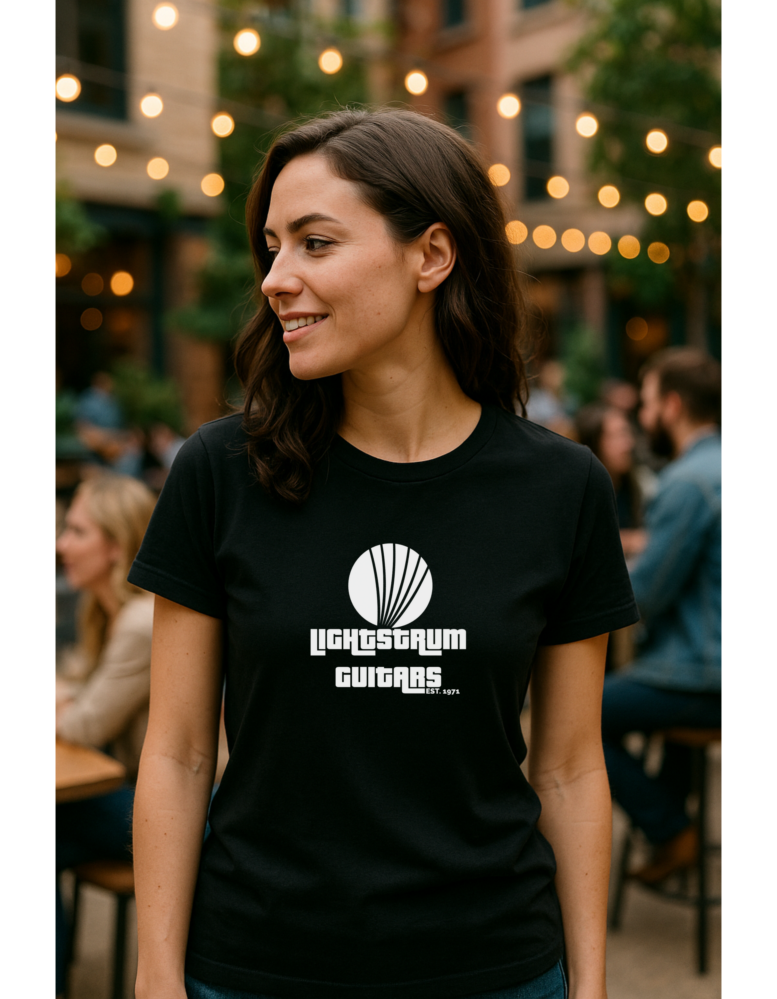 Shop nowAdd some rhythm to your wardrobe with our white Lightstrum Guitars logo on a sleek black t-shirt. It's rock 'n' roll Mister!